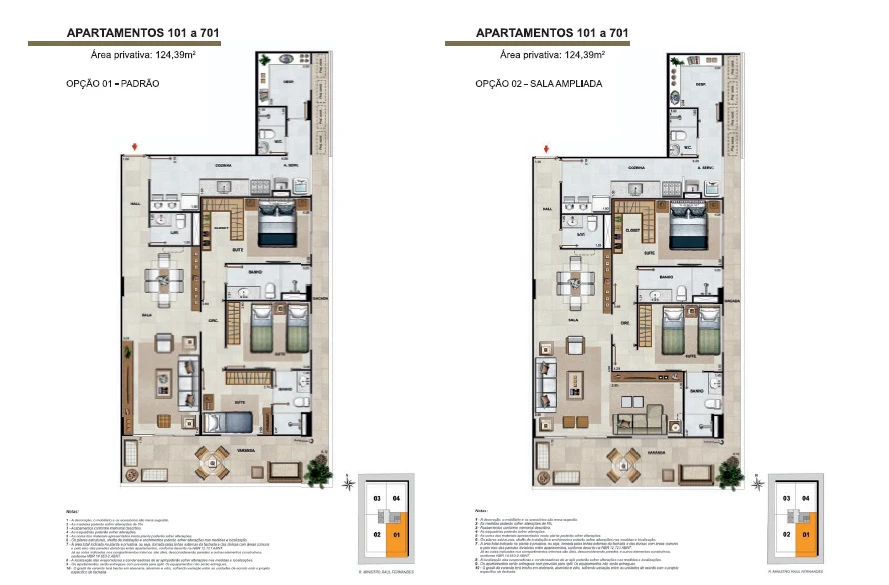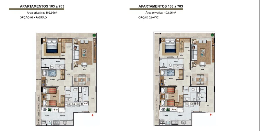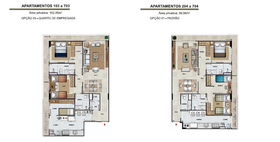 Apartamentos de 3 quartos com 99m² até 128m².