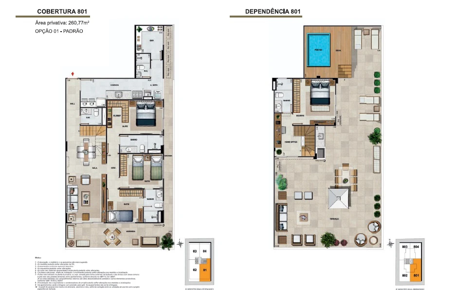 Coberturas de quartos com 207m² até 269m² de 4 quartos.